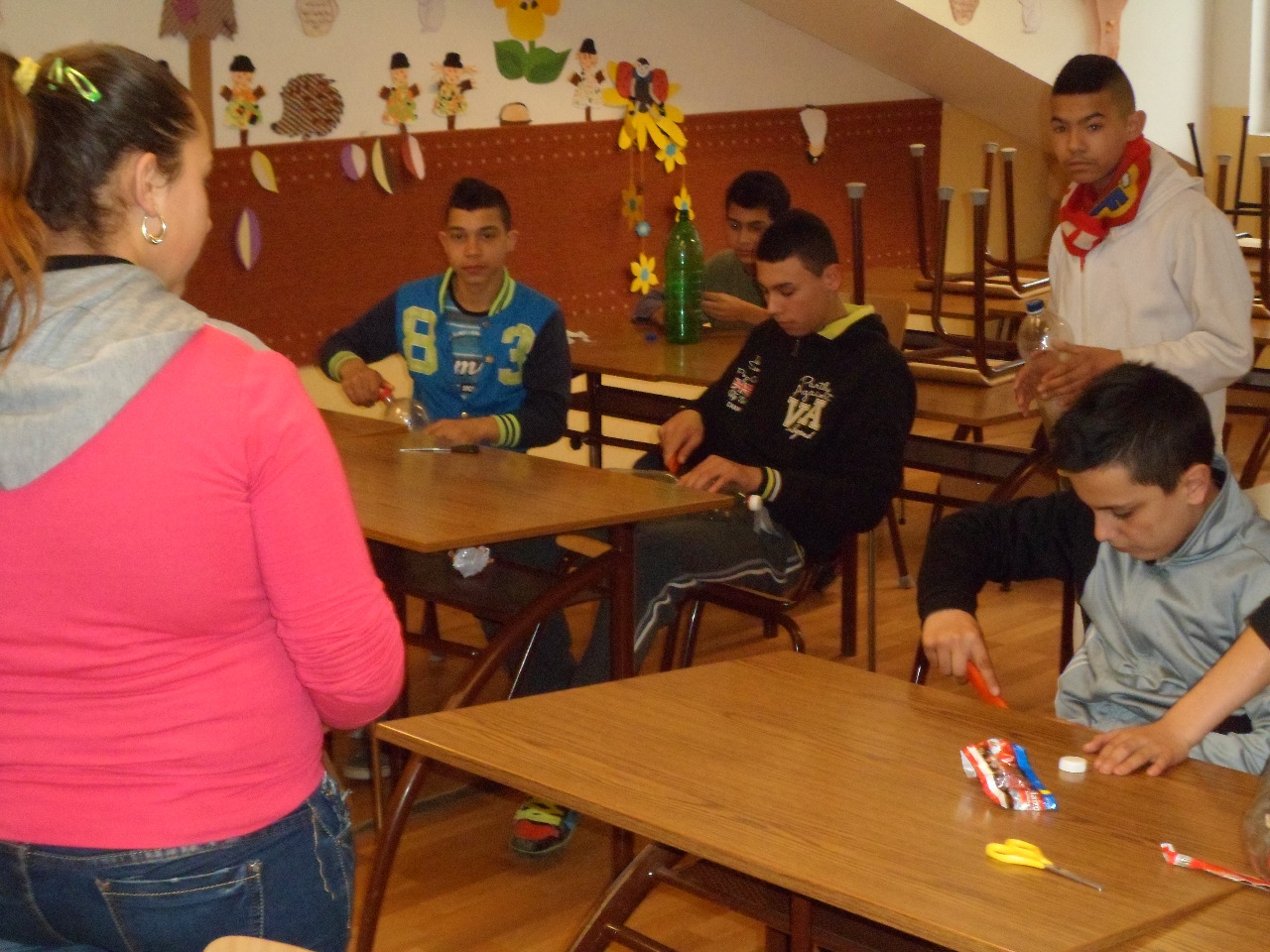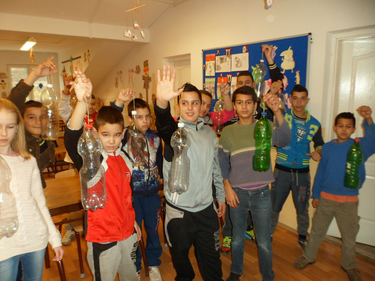 A szini gyerekek madáretetőt készítettek műanyag palackból.